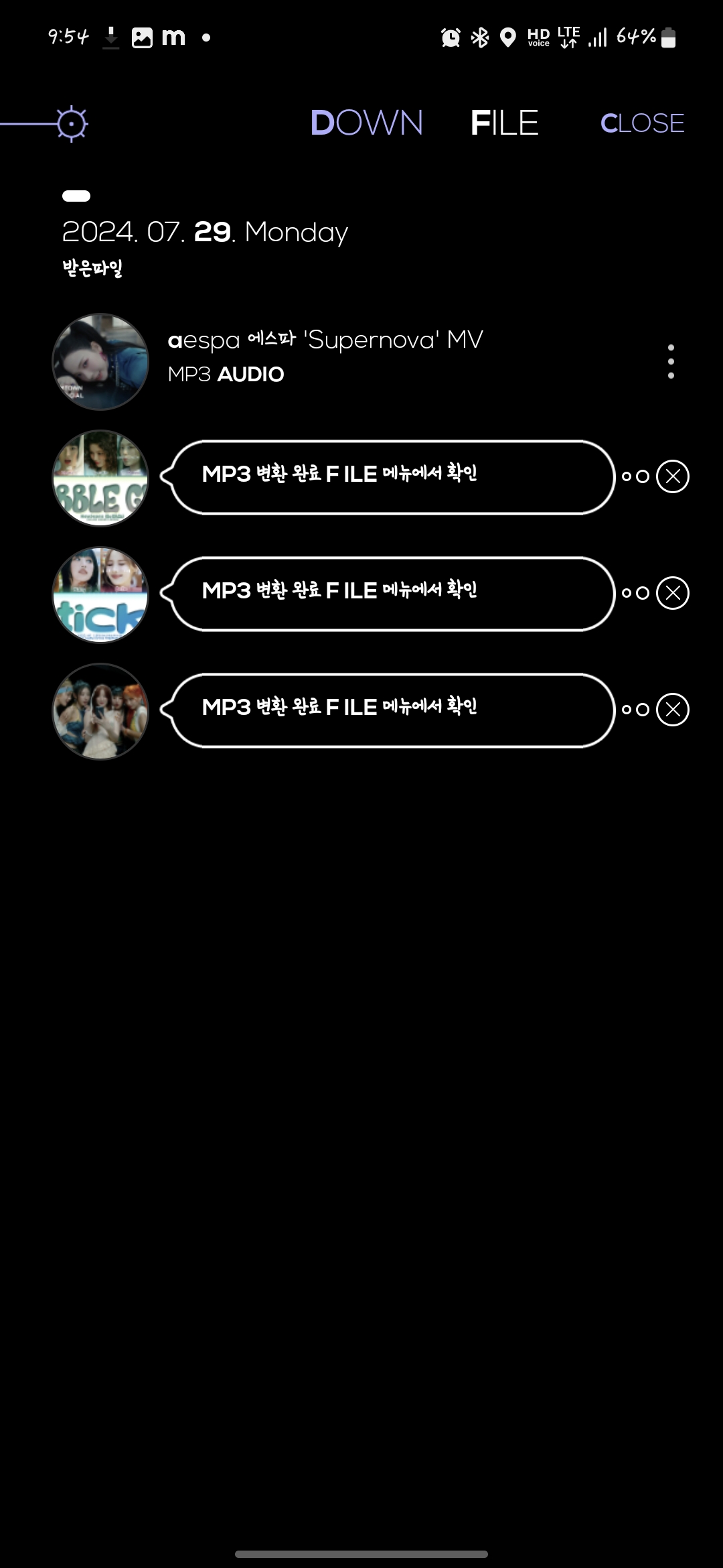다운을 받으시면 저런 창이 나오는 게 맞습니다. 그리고 자신의 폰에 있는 뮤직 플레이어를 이용해서 들으시면 끝입니다.