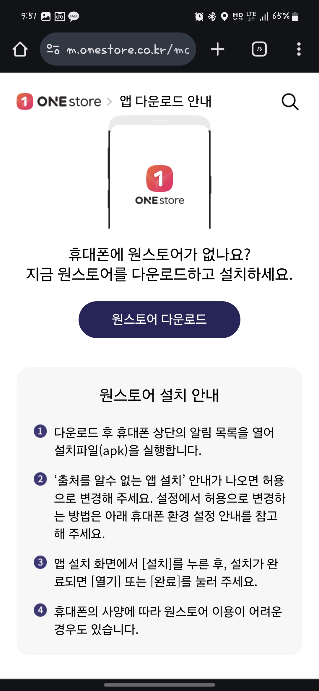 1. 원스토어 설치